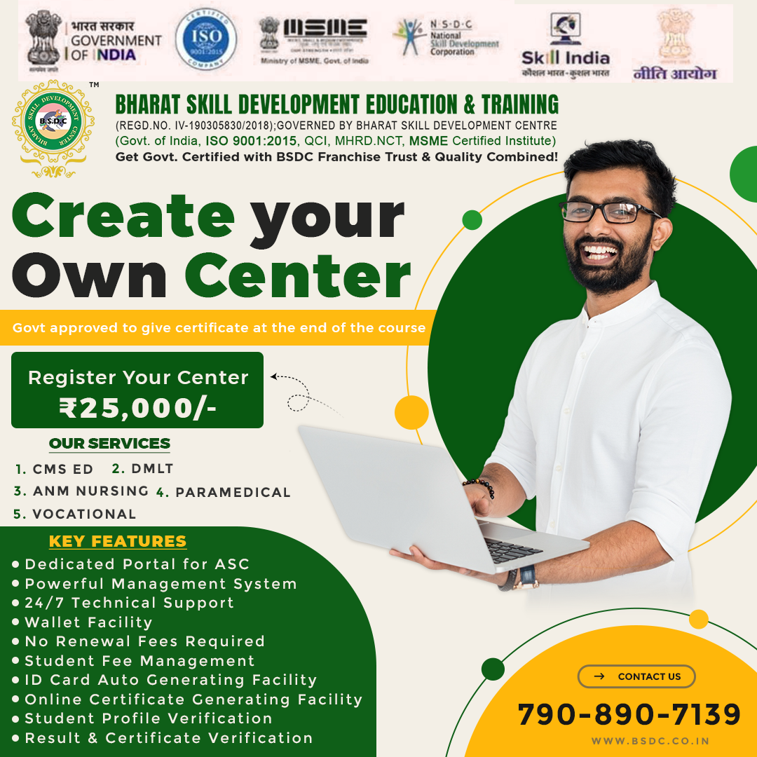 Welcome To Bharat Skill Development Center. Bharat Skill Development Education and Training is a franchisee approved All India . Contact Our WhatsApp No: +91 7908907139